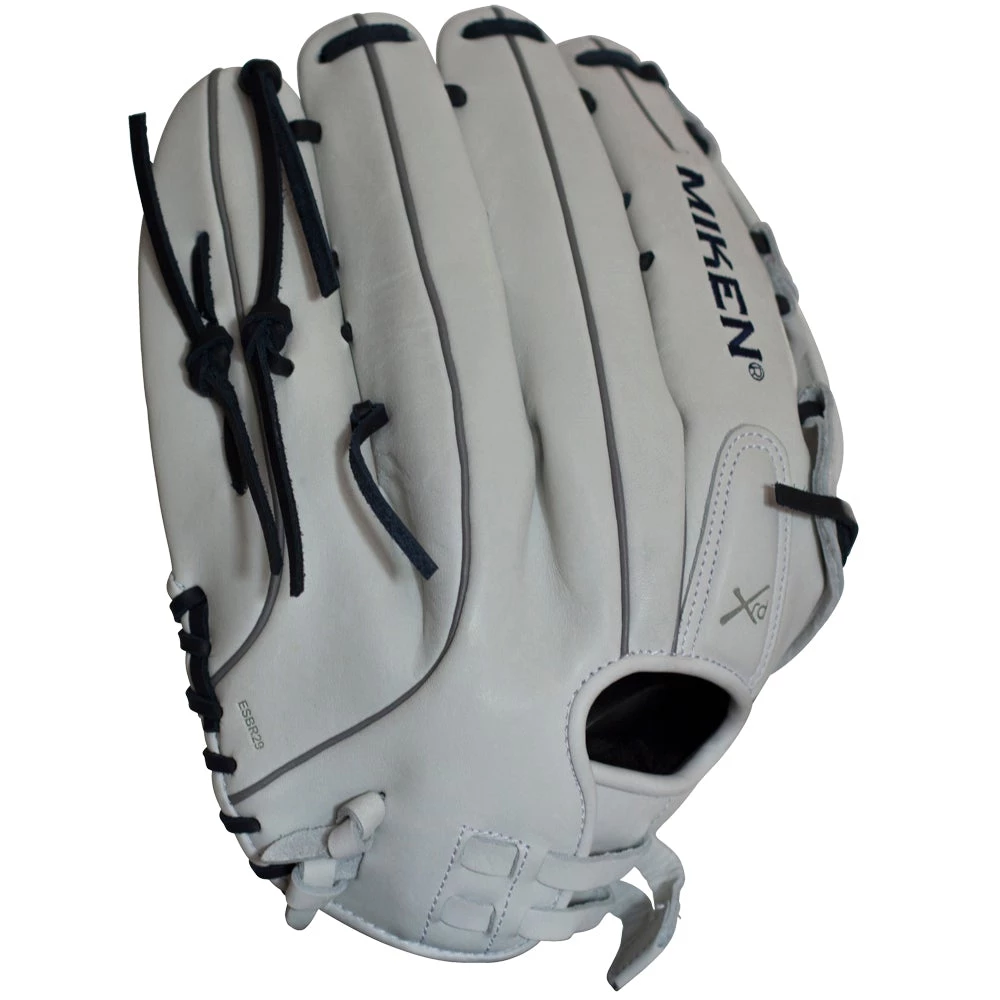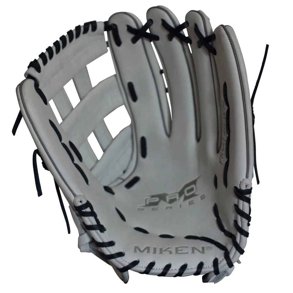 Miken Pro Series 14″ slow pitch softball glove features the Pro H Web pattern, which is an extremely strong web that provides ball snagging functionality. This softball glove has a lightweight, soft, full-grain leather shell for a game-ready feel. Additionally, the PORON XRD palm padding has been added to drastically reduce ball impact to your hand.